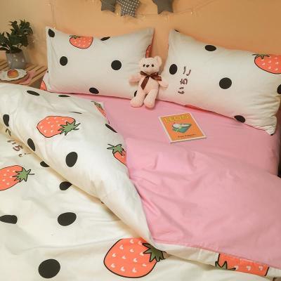 美帮汇小清新全棉全棉四件套少女心床单被套单人床三件套床笠床上用品春