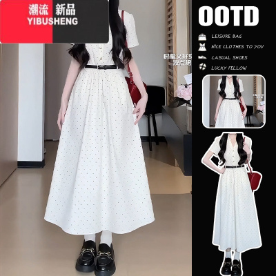 YIBUSHENG气质白色波点衬衫连衣裙子女季2024新款简单大方得体长裙小个子