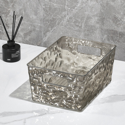 泽熙 [ZT2168]桌面大号收纳筐整理箱化妆品橱窗收纳盒透明零食玩具收纳盒 透灰色(不带坐兔)