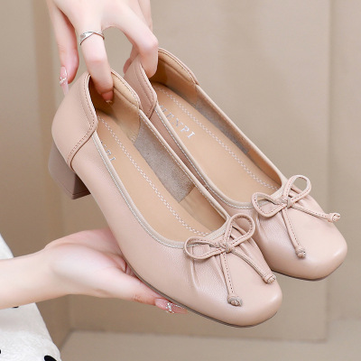 真皮方头芭蕾舞鞋女25秋季粗跟四季法式复古芭蕾单鞋中跟玛丽珍鞋