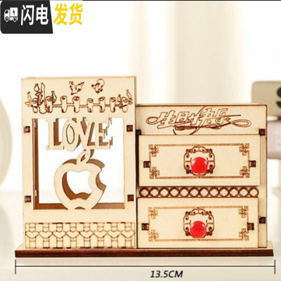 三维工匠木质沙漏抽屉笔筒学生同学闺蜜生日笔筒沙漏客厅摆件收纳办公 友情抽屉