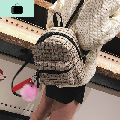 韩版包包女新款时尚女包呢子双肩包迷你百搭小背包格子休闲小包包NEW LAKE