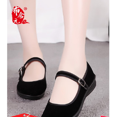 布舍元女平底酒店黑色工作服务员饭店宾馆礼仪舞蹈老北京布鞋2W10