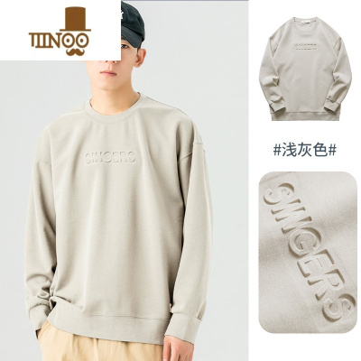 YANXU圆领卫衣男潮牌款宽松印花上衣秋季休闲套装长袖打底衫