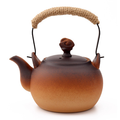美帮汇藤编提梁壶纯手工粗陶煮茶壶烧水壶泡茶壶竹提梁老岩泥炭火烧茶壶