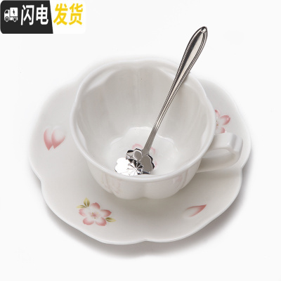 三维工匠日式少女樱花陶瓷咖啡杯咖啡杯碟套装欧式杯碟下午茶杯碟配杯架 1杯1碟赠白勺(粉色)咖啡器具