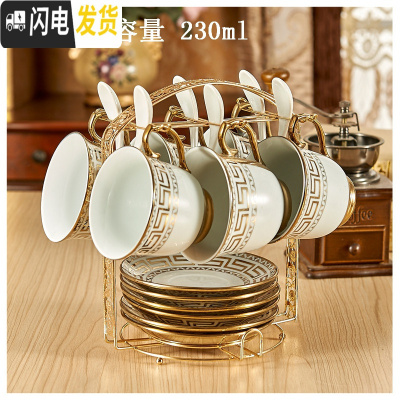 三维工匠咖啡杯套装套具 整套欧式骨瓷陶瓷杯碟茶具茶杯家用马克杯水杯子 吉祥6杯碟勺+架子咖啡器具