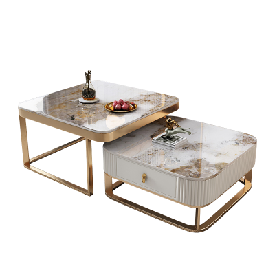 青木川意式轻奢简约现代岩板正方形茶几北欧客厅家用茶几桌泡茶桌咖啡桌创意小户型收纳储物柜小茶几边桌网红家具