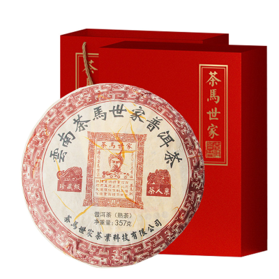 茶马世家珍藏普洱熟茶普锦面礼盒装357g 正宗云南珍藏级南糯山正品古树普洱熟茶礼盒装