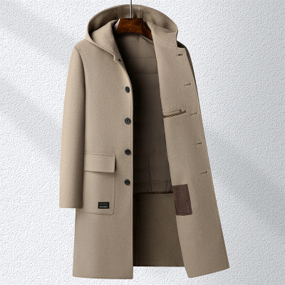100%羊毛秋冬连帽双面呢长款大衣羽绒内胆尼大衣风衣男士妮子大衣