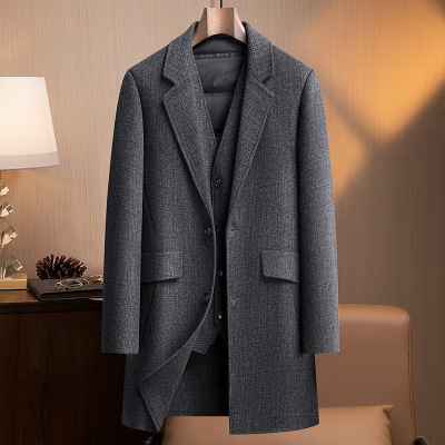 中老年商务脱卸羽绒马甲双面呢大衣秋冬男士中长羊毛大衣加厚外套