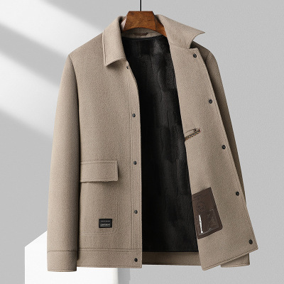 秋冬新款羽绒内胆双面呢大衣男士加厚中老年翻领羊毛大衣