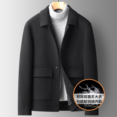 秋冬100%羊毛短款双面尼大衣男可脱卸羽绒内胆双面呢羊毛大衣外套