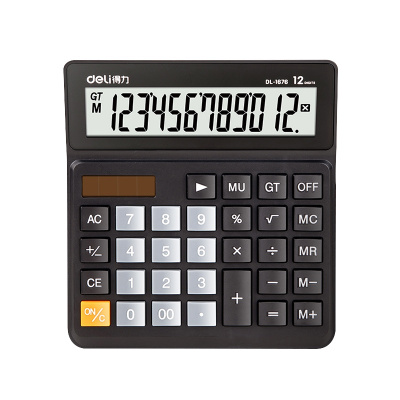 得力1676双电源桌面计算器 12位宽屏财务计算器 黑色