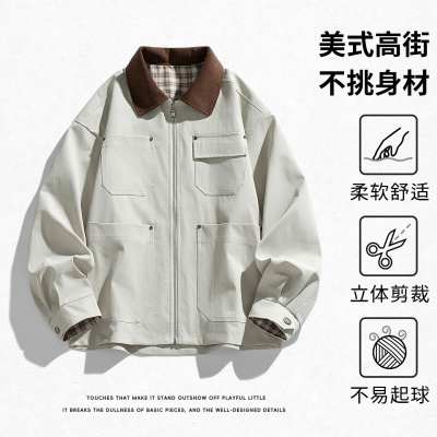 男装新款工装夹克春秋休闲美式高街撞侣夹克翻领外套男女同款