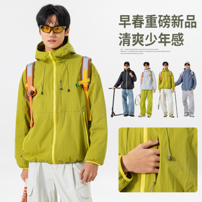 春秋季户外冲锋衣工装夹克运动潮流连帽情侣款休闲防水服夹克外套