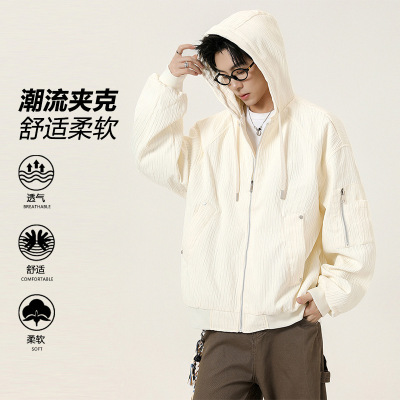 男装夹克春秋季新款美式潮流时尚连帽宽松休闲百搭夹克男开衫外套