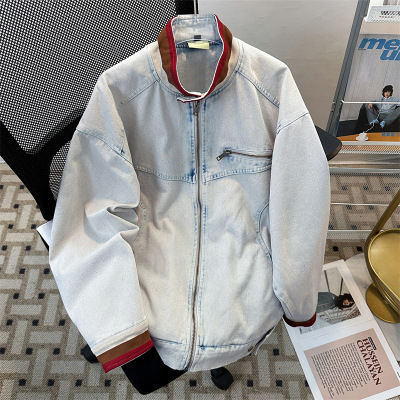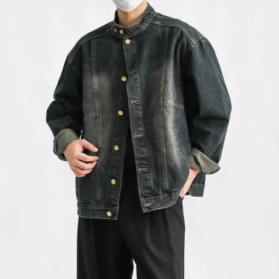 男装潮牌百搭慵懒时尚简约牛仔夹克春秋新款日系复古立领痞帅夹克