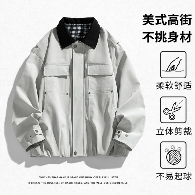 男装新款宽松潮牌飞行员夹克男式多口袋工装夹克撞色百搭痞帅外套