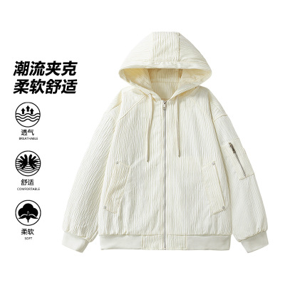 夹克男春秋连帽休闲情侣款潮牌时尚男款潮流宽松舒适夹克外套上衣