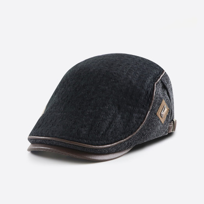 秋冬季男女士保暖针织拼接鸭舌帽英伦时尚韩版中老年前进