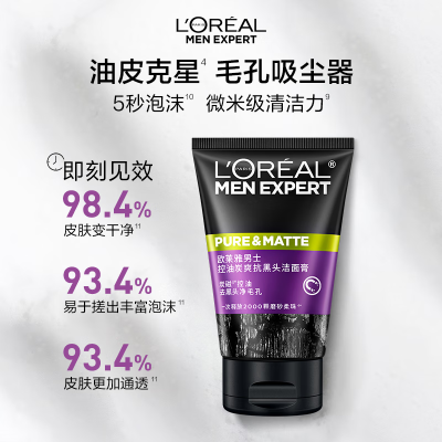 欧莱雅男士抗黑头洁面乳100ml*2套装控油祛痘去角质洗面奶护肤品七夕