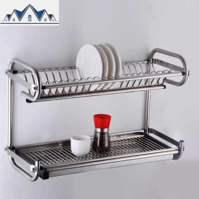 厨房置物架304不锈钢碗架沥水架双层挂墙收纳架餐具晾壁挂碗碟架 三维工匠