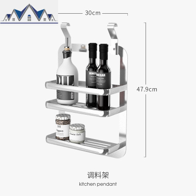 不锈钢免打孔厨房置物架灶台调料菜刀铲勺板碗碟锅盖筷收纳挂壁架 三维工匠