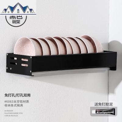 碗架挂壁挂式免打孔碗碟架厨房碗筷置物架壁挂沥水架盘子收纳挂墙 三维工匠