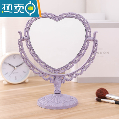 敬平欧式台式化妆镜子 新款复古镜子 双面梳妆镜简约大号便携公主镜子便携式用镜 紫色