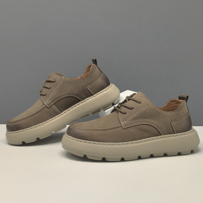 男士头层牛皮休闲鞋欧洲站真皮百搭潮鞋高端小众厚底增高鞋男