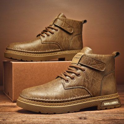 男靴子秋冬季新款皮面复古潮鞋拉链便捷百搭马丁靴高帮厚底增高鞋
