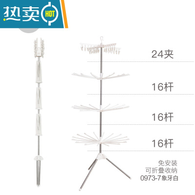 敬平婴儿晾衣架落地尿布架毛巾架可折叠晒袜架多功能宝宝衣架24夹32枝 一层白色夹子24个 360旋转衣夹