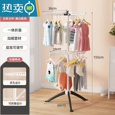 敬平婴儿晾衣架落地折叠多功能晒衣器新生儿童衣架宝宝尿布架毛巾架 [双层款黑白]金属款-双层7翅防风-可旋转升降 大