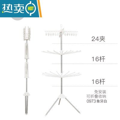 敬平婴儿晾衣架落地室内新生儿童尿布多夹子阳台晒衣架宝宝专用 二层[24夹+16杆] 防风款 可旋转 象牙色 中衣夹