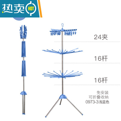 敬平婴儿晾衣架落地室内新生儿童尿布多夹子阳台晒衣架宝宝专用 三层[24夹+32杆] 防风款 可旋转 浅蓝色 中衣夹