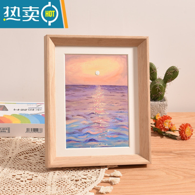 敬平高品质 实木配白色卡纸a5油画棒作品保存专用立体小画框装裱相框 浅木纹(057斜面) 放10*10作品-卡纸开孔(9