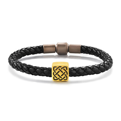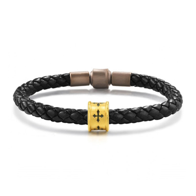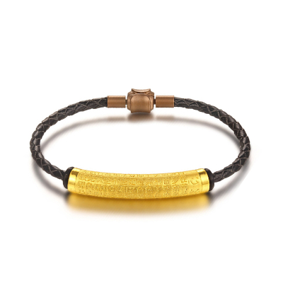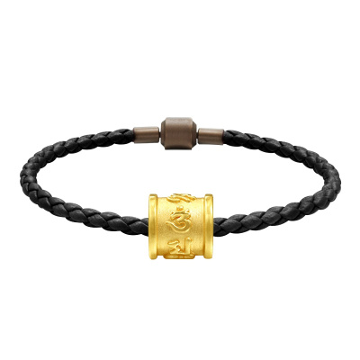 GZUAN古钻珠宝 黄金手链祈福心经 3D硬金转运珠手串 男女款 黑皮绳 YJS0021