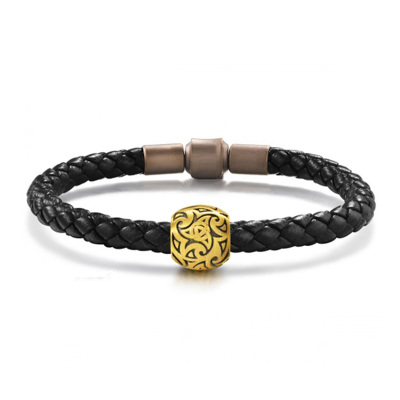 GZUAN古钻珠宝 信念 黄金足金3D硬金转运珠男款黑绳手链手串 JXYJS0014