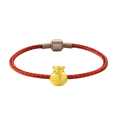 GZUAN古钻珠宝 福袋 黄金足金3D硬金转运珠男女款红绳手链手串 JXYJS0006