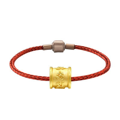 GZUAN古钻珠宝 真言 黄金足金3D硬金转运珠男女款红绳手链手串 JXYJS0008