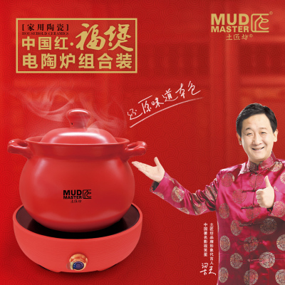 MUDMASTER土匠坊中国红原矿陶瓷福煲套装JX-T-0078(1800W)