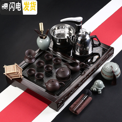 三维工匠家用简约紫砂喝茶泡茶中式茶道茶杯功夫茶具全自动一体组合套装 黑檀木石不锈钢-紫砂西施 30件