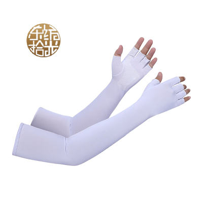 东纺拾光 DF2027 男款冰丝透气防晒袖套套指款白色 1双/包