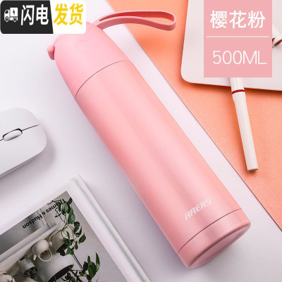 三维工匠女便携不锈钢保温杯男学生可爱水杯网红ins简约弹跳盖杯子 水粉色