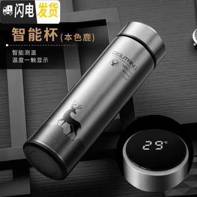 三维工匠保温杯男士女不锈钢水杯子便携水瓶学生商务定制泡茶杯 本色鹿[智能杯盖]