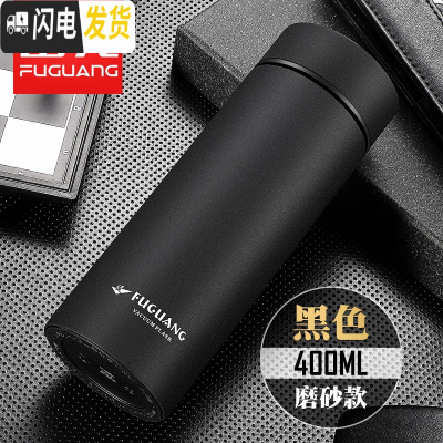 三维工匠保温杯男女士泡茶便携304不锈钢水杯学生大容量刻字定制杯子 400黑色