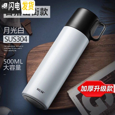 三维工匠保温杯男时尚大容量便携茶杯不锈钢女士学生水杯子定制刻字 月光白500