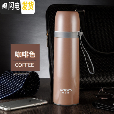 三维工匠男女学生不锈钢保温杯大容量便携迷你韩版清新可爱文艺水杯 咖啡色