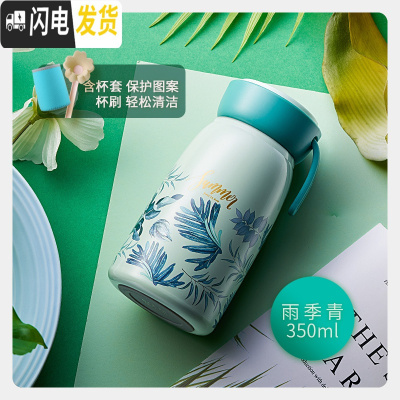 三维工匠保温杯女男316不锈钢便携简约小学生可爱水杯子防摔迷你壶 雨季青